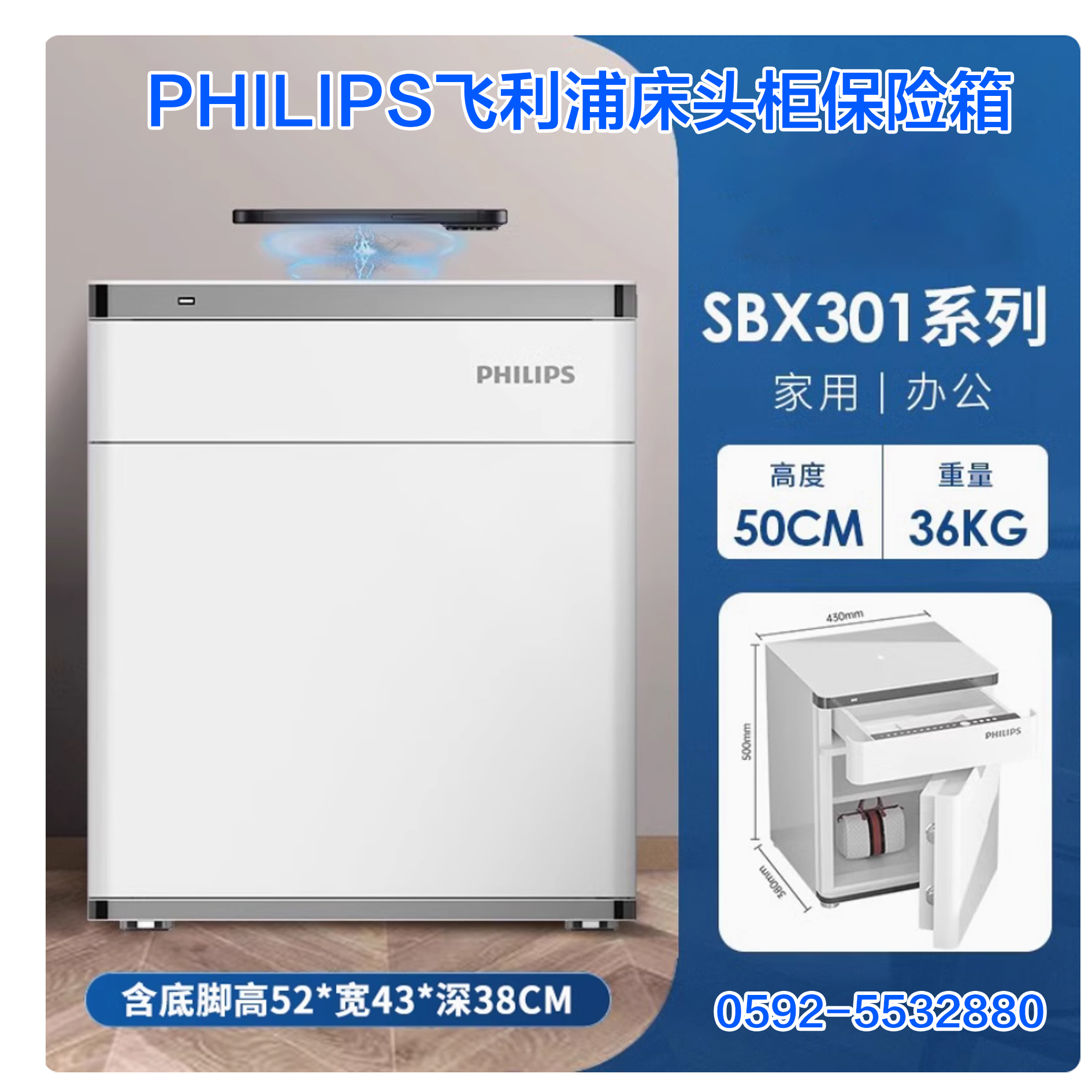 厦门实体店飞利浦301保险柜家用小型床头柜保险箱一体家庭智能密
